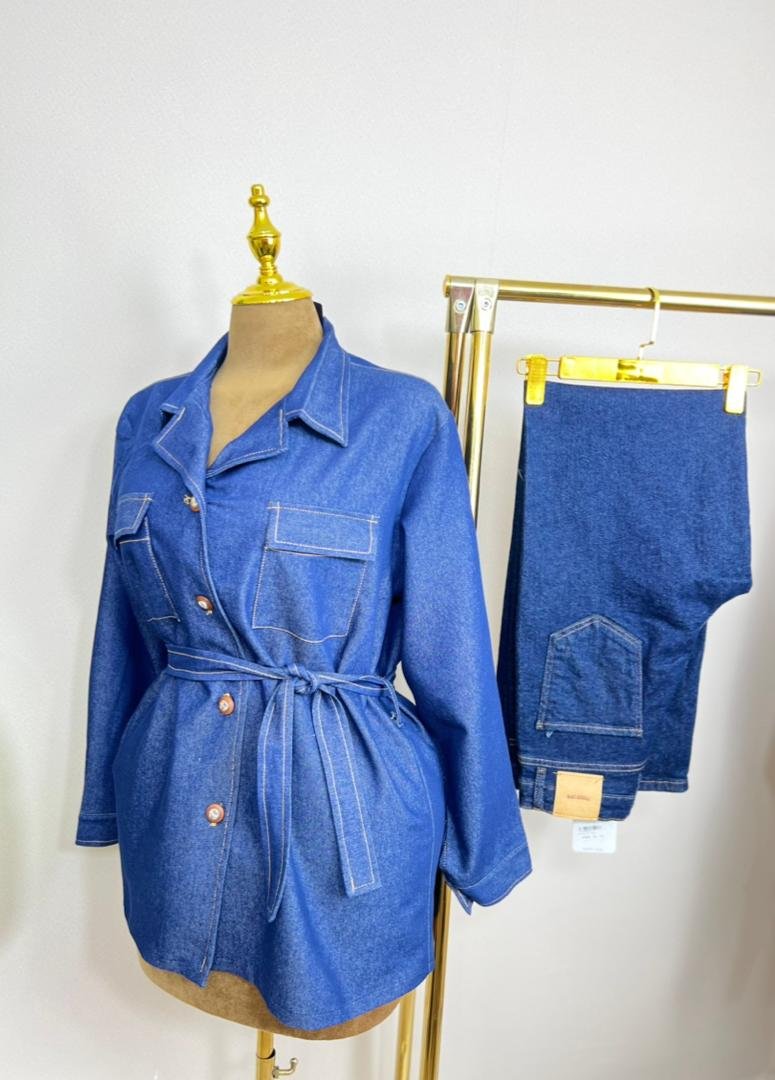 دينيم رويال” جاكيت جينز باللون الأزرق مع حزام يحدد الخصر ليعطي لمسة عصرية أنيقة… عملي ومريح… يليق للإطلالات اليومية والخروجات